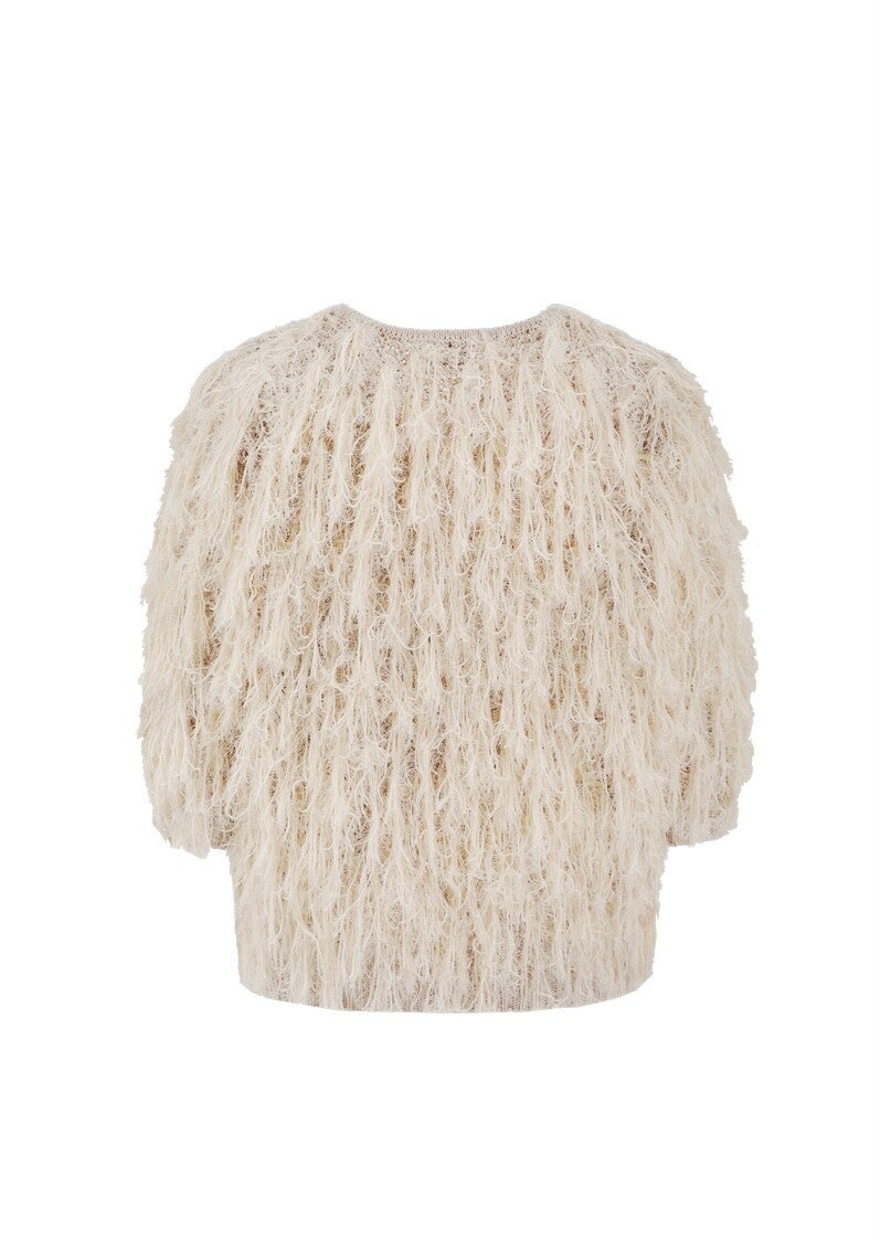 Fluresk knitting Cardigan Peggy in zandkleurig fluffy materiaal.