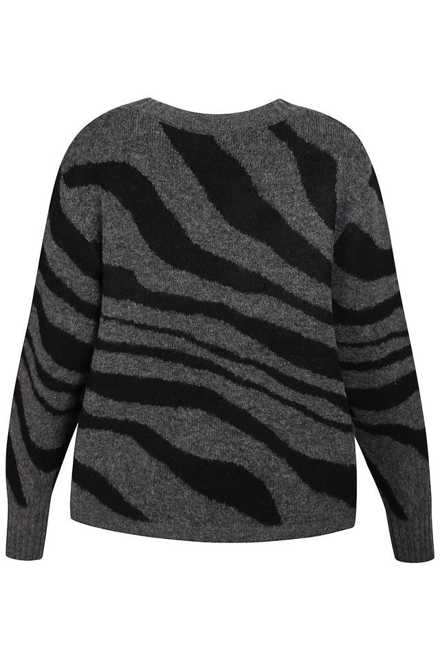 Trui van ZE-ZE met dierenprint en ronde hals. In het zand kleur en grijs verkrijgbaar.