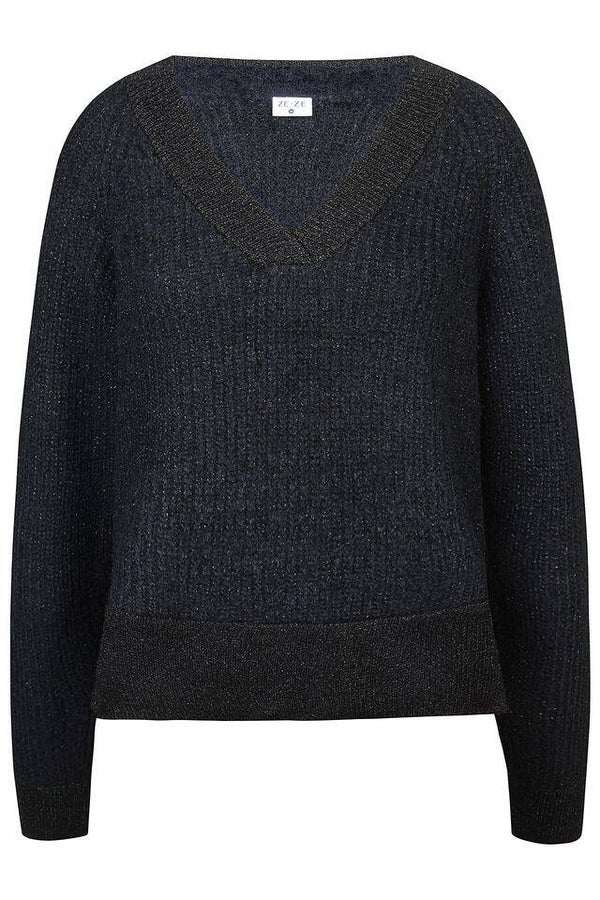 ZE-ZE trui Brit in het zwart met V- hals en lange mouwen. De trui is heerlijk zacht en warm.