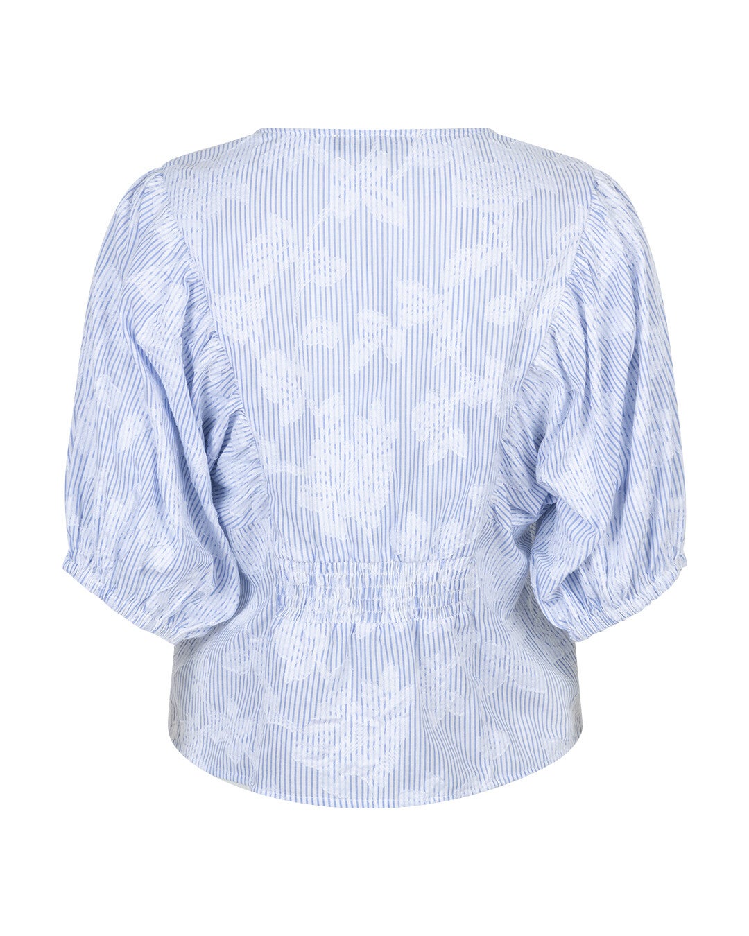4838 Blouse Balloonsleeve Stripe & Flower Blue